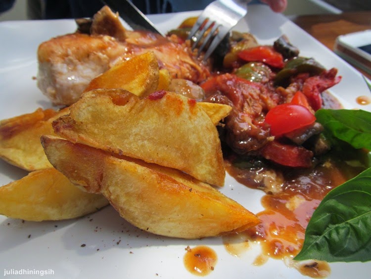 Tidak perlu ditanya lagi, tekstur ikan dori selalu enak dan dagingnya juga lembut. Tapi aku rasa tepungnya terlalu berminyak, agak berbeda dengan yang aku coba saat di Jakarta. Tak apalah, kentang gorengnya bisa mengurangi sedikit kekecewaan.